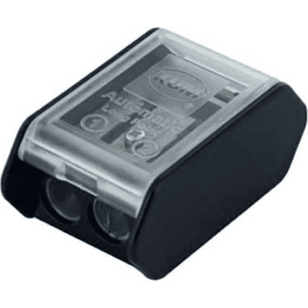 KUM AS3'ün sırrı, iki ayrı delikten oluşan patentli açma yönteminde. Birinci delik yalnızca kalemin tahta gövdesini yontar — min (grafit) çubuğuna dokunmadan. Otomatik fren (automatic brake) mekanizması sayesinde tahta tam doğru noktada durak ve daha fazla yontma yapmaz. İkinci delikte ise açığa çıkan min, özel açıyla bilenmiş bıçakla şekillendirilerek ekstra uzun ve sivri bir uca dönüşür. Sonuç: normal bir kalemtraşla elde edemeyeceğiniz kadar uzun, hassas ve uzun süre sivri kalan bir kalem ucu.