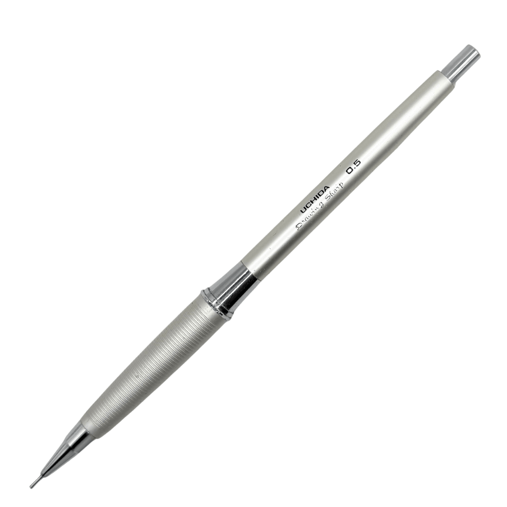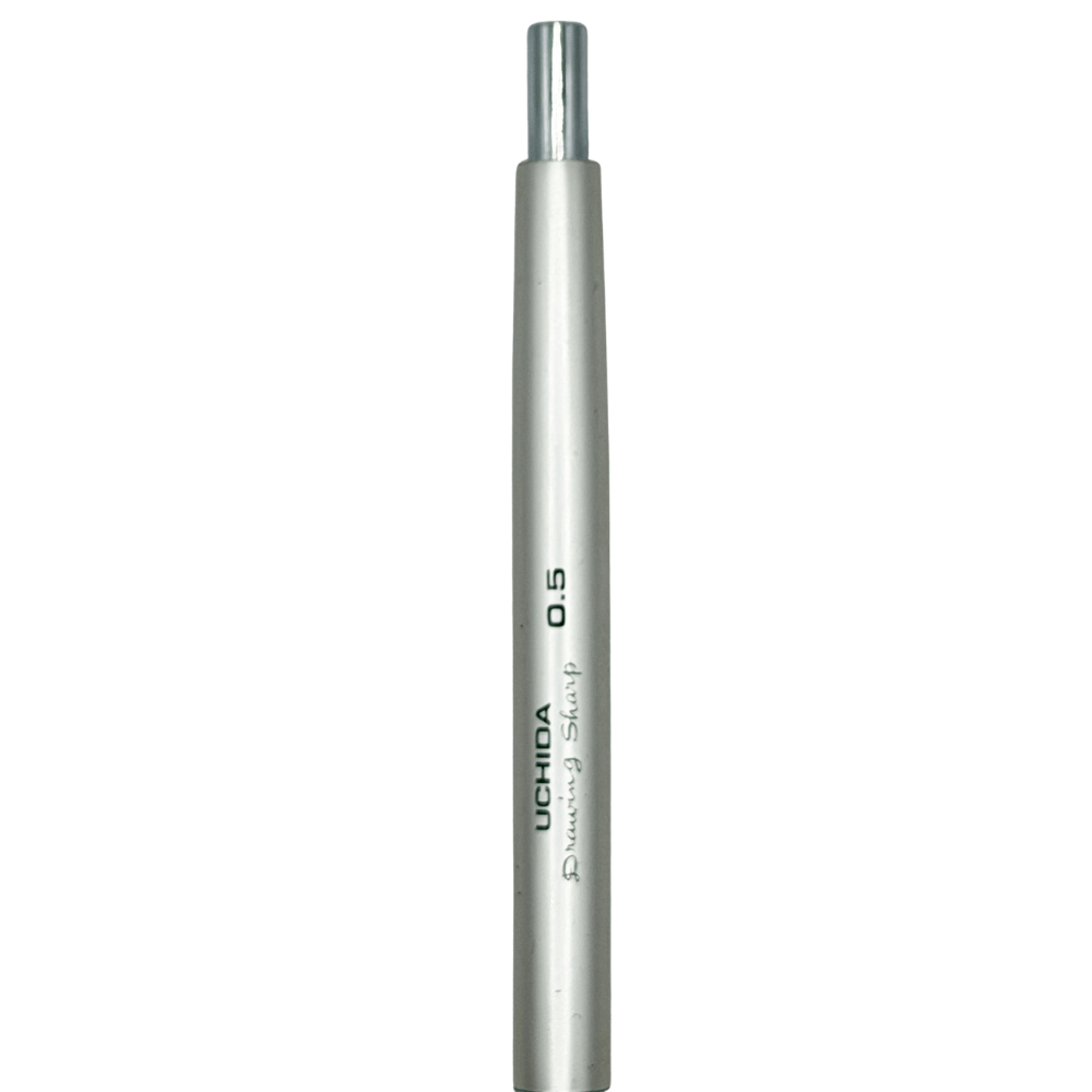 Uchida, 1910'dan beri teknik çizim ekipmanları üreten Japon markası. Drawing Sharp serisi, markanın en ikonik kalem ailesi olarak kabul ediliyor ve benzersiz vidalı mekanizmasıyla mekanik kalem tarihinde özel bir yere sahip. Bu model artık üretilmiyor. 0.5mm versiyonun full metal gövdeli hali, piyasada giderek azalan parçalardan biri. Vidalı mekanizmalı modern bir drafting kalemi bulmak neredeyse imkânsız — Drawing Sharp bu kategoride tek başına duruyor.