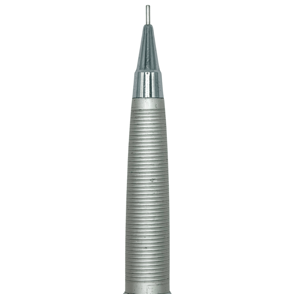 Uç bölgesinde 4mm sabit metal kılıf (fixed sleeve) bulunuyor. Bu tasarım, kalemin cetvel ve şablon kenarına dik olarak yaslanmasına izin vererek çizgilerin kenardan uzaklaşmadan, temiz ve hassas çizilmesini sağlıyor. Kılıfın konik formu ise çizim sırasında görüş alanını açık tutuyor.